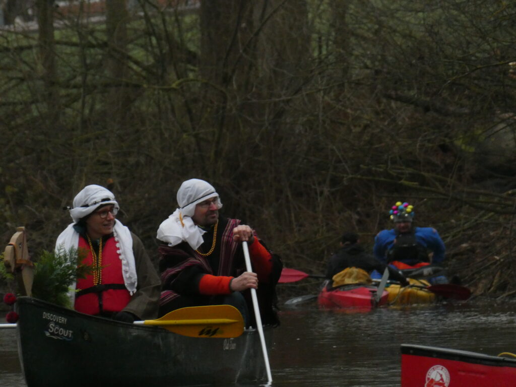 Von einem Empfangskomitee wurden wir herzlich in Vaihingen begrüßt und unsere Kostüme fachmännisch von der Kanujugend bewertet.