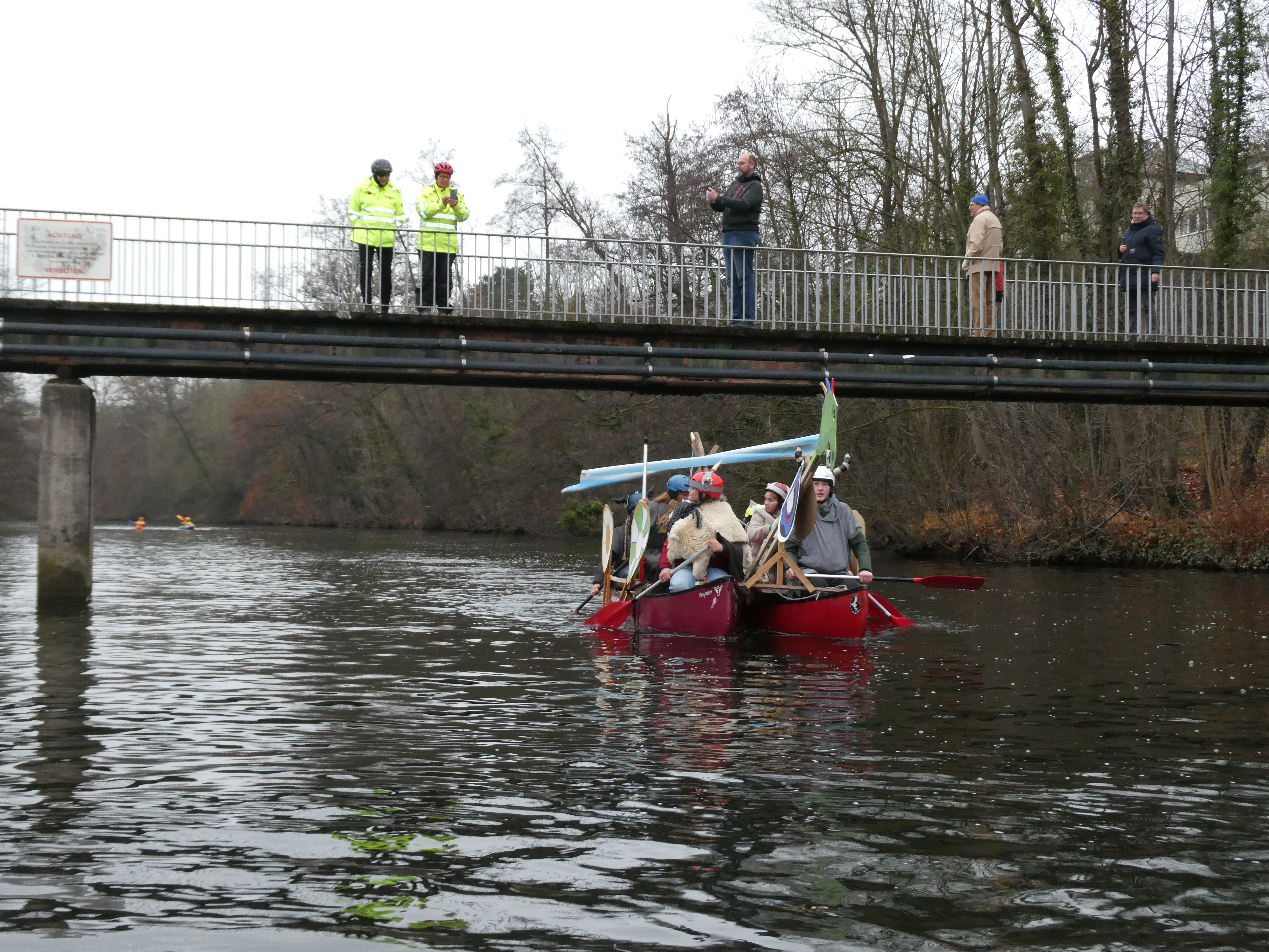 Nach einer kurzen Ansprache und der Ankunft der wackeren fünf war es Zeit die Boote in die Enz zu lassen. Auf das Startsignal hin hissten eine Horde Wikinger und Piraten ihre Segel.