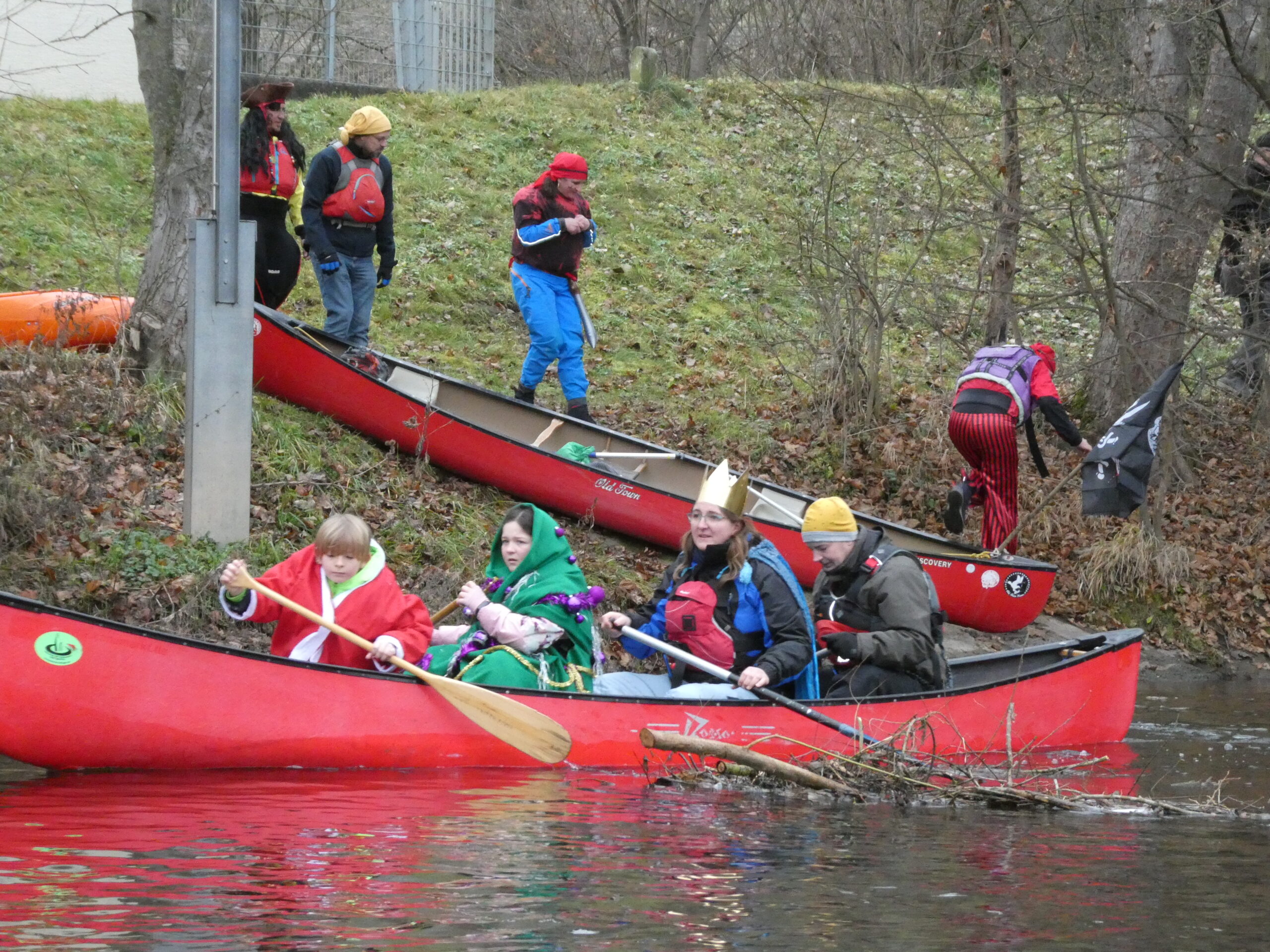 Eine liebgewonnene Tradition feierte ihr silbernes Jubiläum, unsere Heiße-Herzen-Fahrt. Obwohl sich der 13. Dezember von seiner nebligen Seite zeigte, trafen sich ca. 55 Paddler und Kanumitglieder aus Vaihingen, Bietigheim und Esslingen um für den guten Zweck zu paddeln. Eine wackere fünfköpfige Gruppe fand die Strecke von Roßwag nach Vaihingen zu kurz und so startete diese vom Mühlacker Festplatz. Die anderen nutzten die Zeit in Roßwag, sich entsprechend in Schale zu werfen und ihre Boote zu dekorieren.