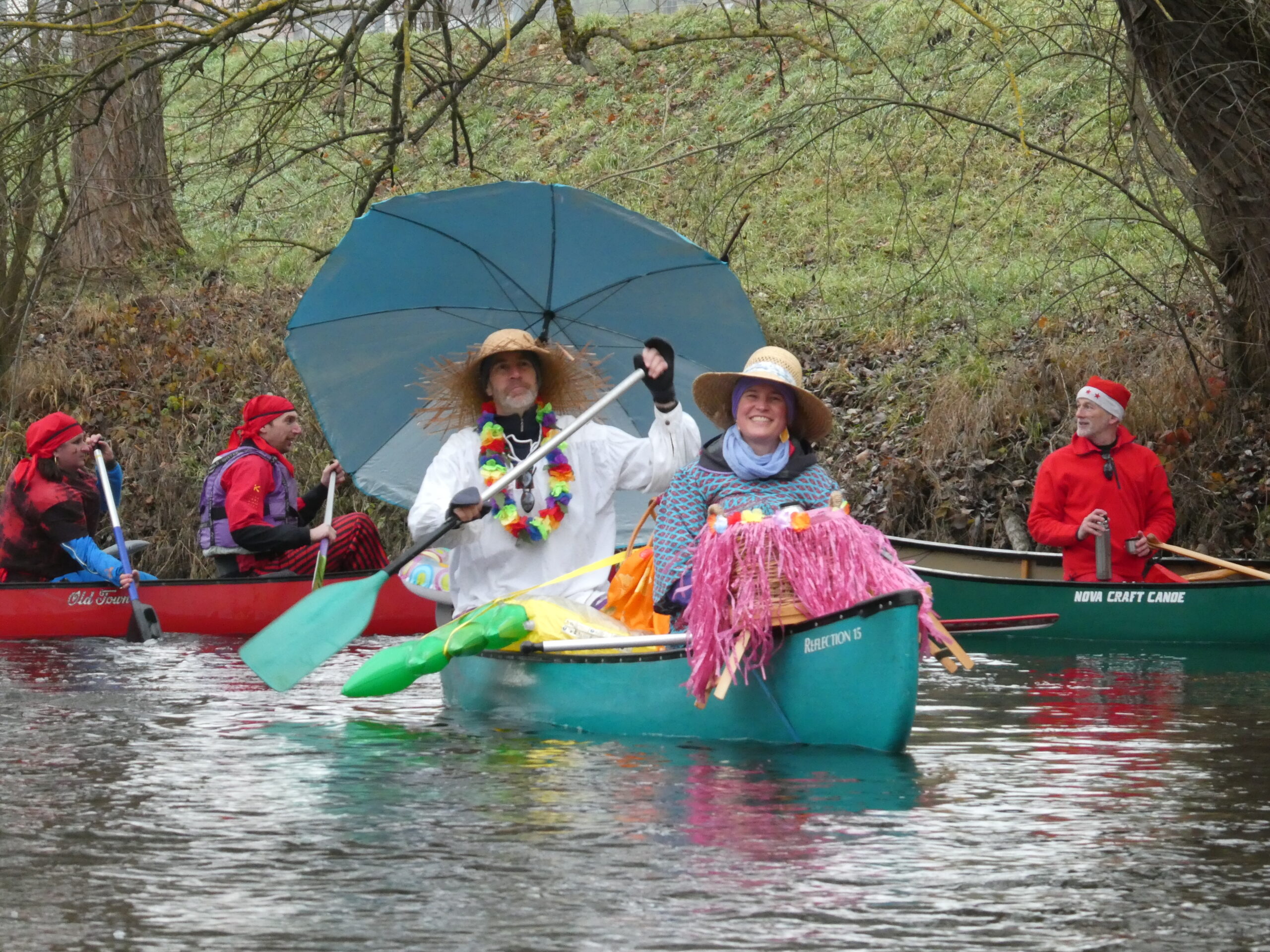 Begleitet von einem Ärzte-Krankenboot, mehreren geschmückten Tannenbäumen und Weihnachtsmännern, zwei Enten und einem Strandurlauberpaar, das den Dezember kurzerhand zum Sommer erklärte, den Heiligen Drei Königen, minus dem dritten, der sich auf dem Weg nach Vaihingen verirrt hat, und passend zum 13. Dezember eine Lucia.