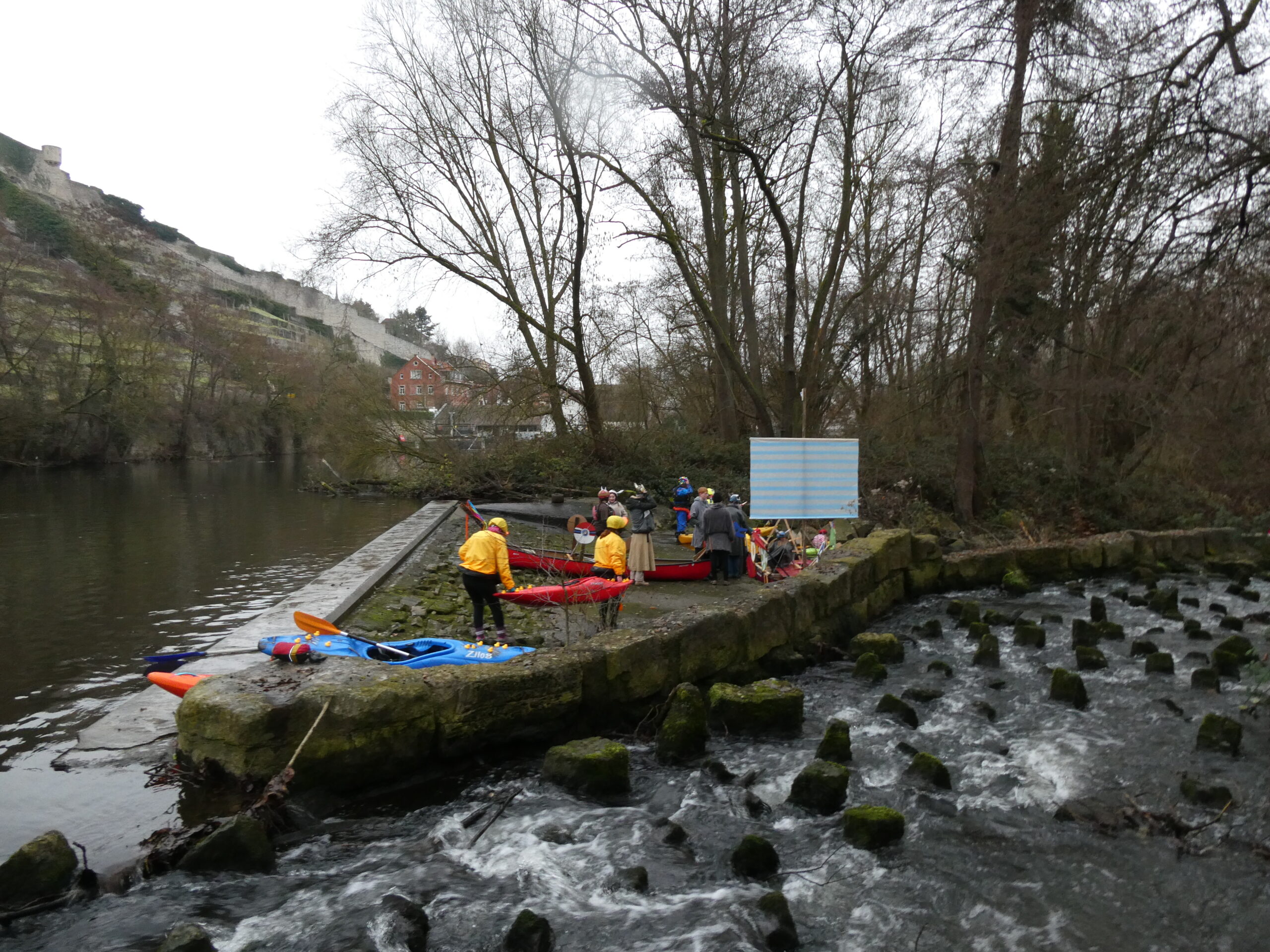 Von einem Empfangskomitee wurden wir herzlich in Vaihingen begrüßt und unsere Kostüme fachmännisch von der Kanujugend bewertet.